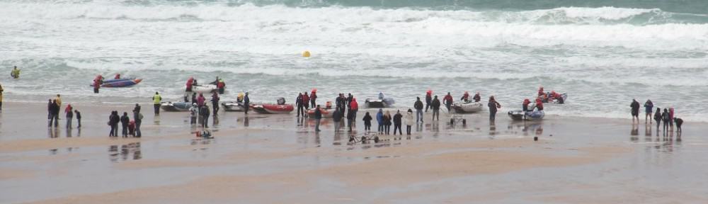Then it was the never ending trek through Newquay till eventually I emerged at the Fistral Beach and the neoprene clad surfers 🙂 (see the header). Then fortunately it was low tide so I could escape by crossing The Gannel by the bridge which gets covered at high tide.
