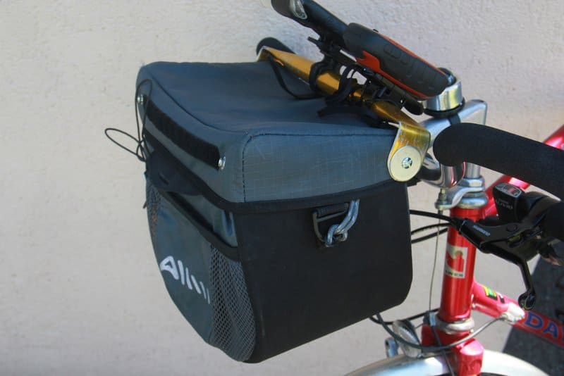 The map case slides underneath allowing space for The Bikeline books, even better the broom handle bar keeps the map case firmly in place.